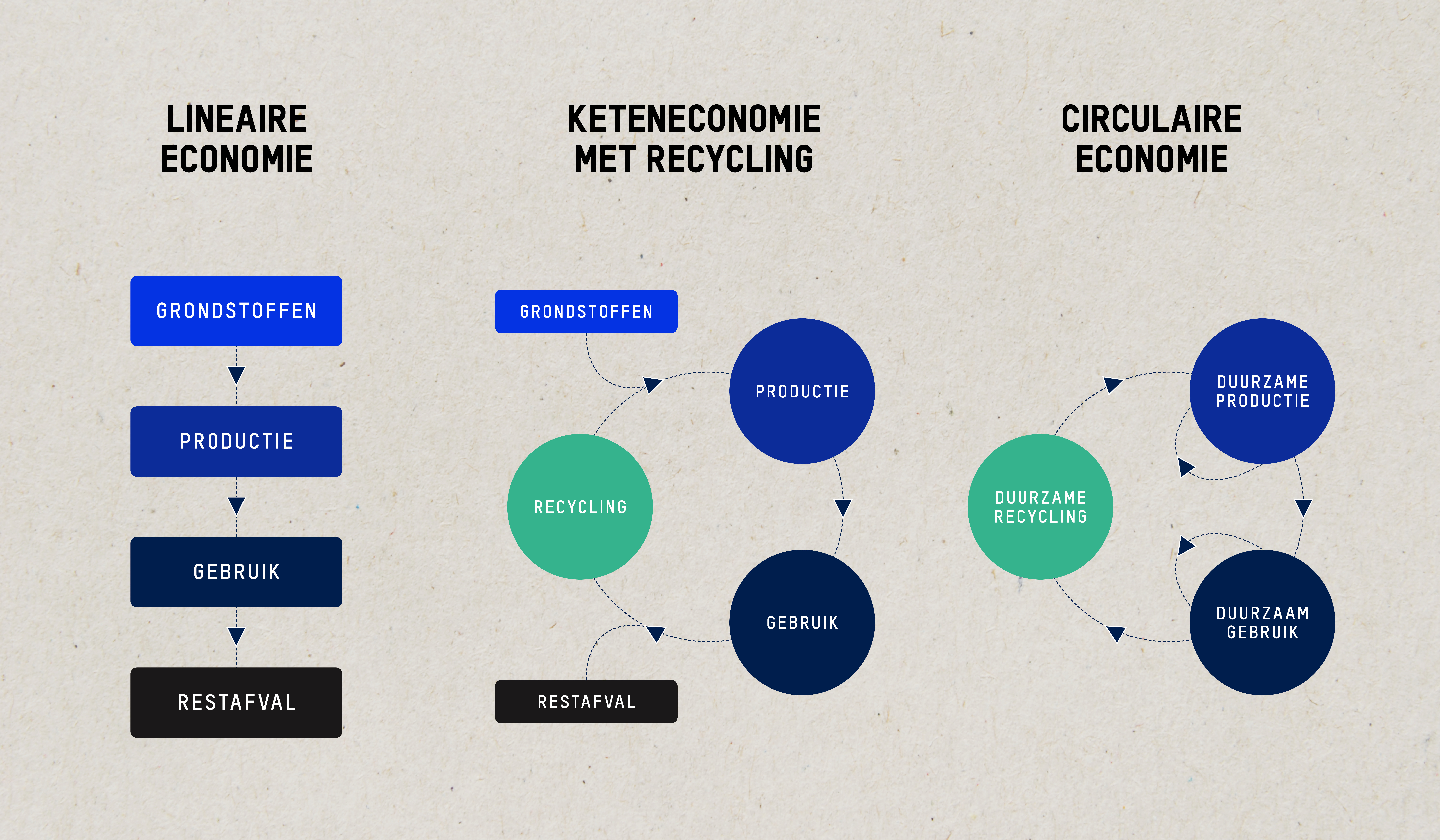 De klimaatverandering die aan de gang is, maakt ons duidelijk dat het anders moet met de industrie. De lineaire economie die gebruikt maakt van fossiele brandstoffen is nefast voor de natuur, het milieu en het klimaat uiteindelijk. Door steeds opnieuw nieuwe grondstoffen te gebruiken putten we onze voorraden uit en gaat de biodiversiteit achteruit. Voor het optimaal winnen van grondstoffen worden er ook slechte chemicaliën en mensonvriendelijke (werkomstandigheden die onaanvaardbaar zijn) technieken gebruikt en is er heel veel al dan niet hernieuwbare energie nodig.